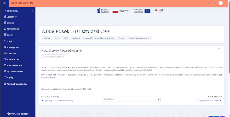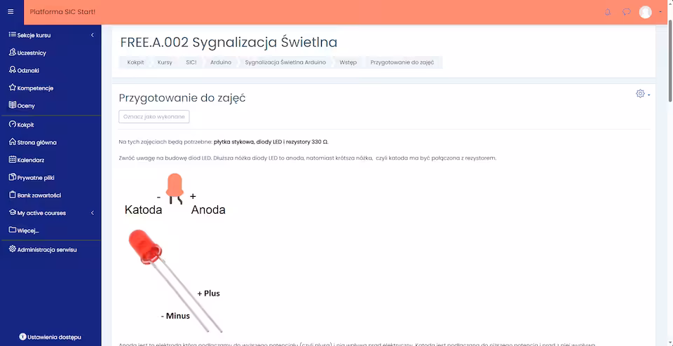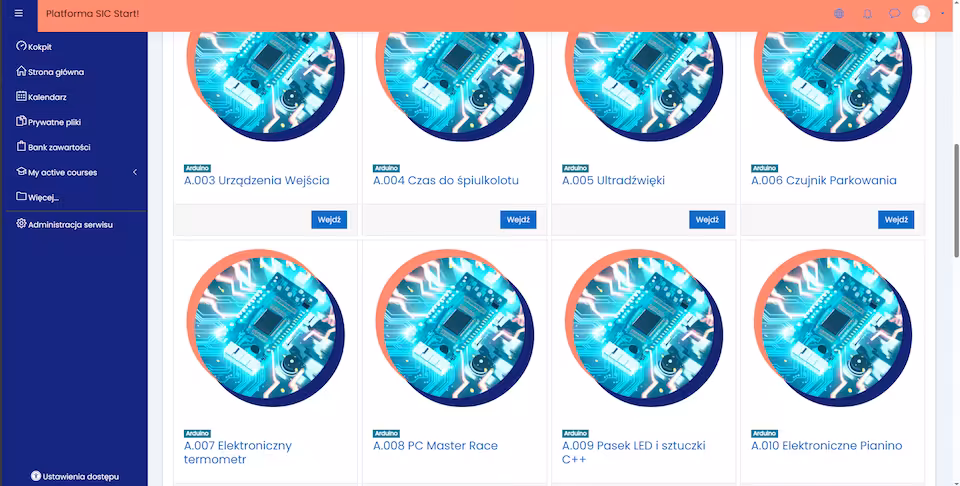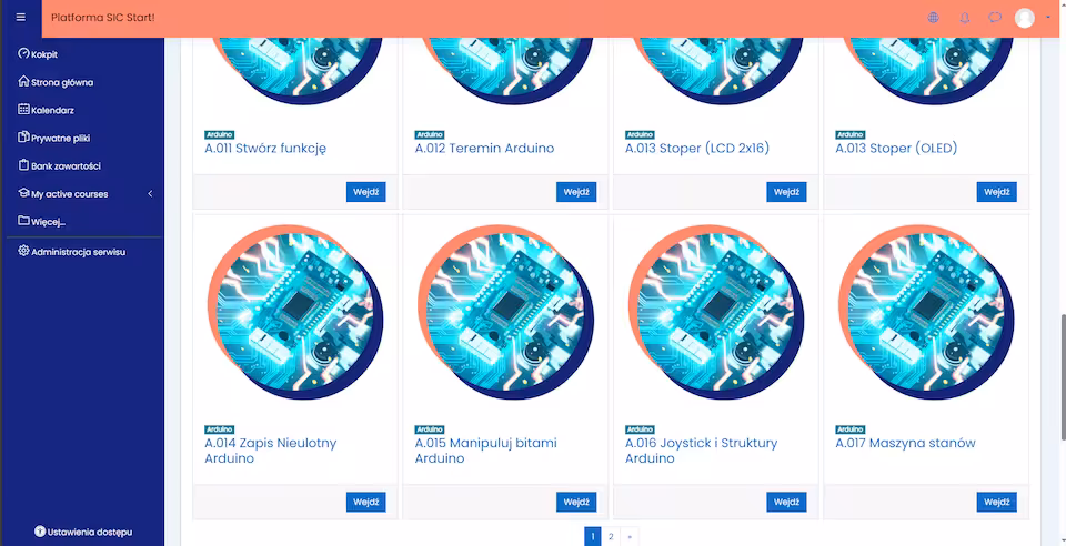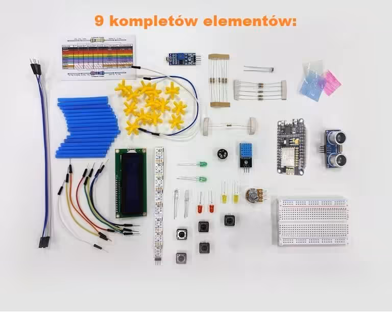 Zestaw Arduino i Internet Rzeczy (IoT) - 9 stanowisk: umożliwia w prosty i przyjemny sposób prowadzenie zajęć na lekcjach np. informatyki, fizyki, techniki i innych. Instrukcje dla uczniów w postaci lekcji na platformie e-learning są napisane w zrozumiały sposób, ponieważ są skierowane do osób, które zaczynają od podstaw i nie miały wcześniej kontaktu z elektroniką i programowaniem. Uczestnicy wykonują własne mini projekty krok po kroku, zapoznając się przy tym z zagadnieniami z dziedzin programowania, elektroniki i fizyki potrzebnymi do wykonania zadań.